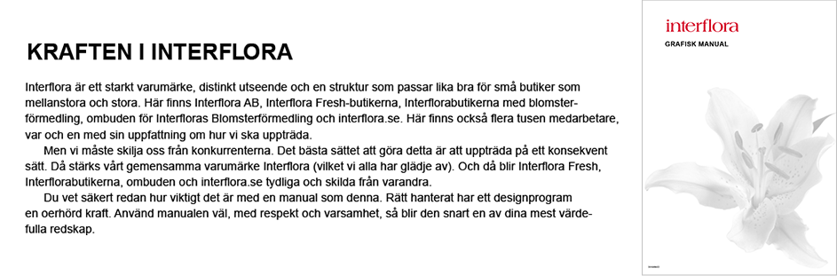 Interflora och den traditionella blomsterhandeln är utsatta för hård konkurrens och prispress från nya aktörer som ICA, Statoil och IKEA. Interfloras VD John Lilja insåg tidigt att för att överleva på denna hårt konkurrensutsatta marknad behövde Interflorabutikerna uppgraderas till framtidens blomsterbutik. Uppdraget att namnge det nyutvecklade butikskonceptet, ta fram en ny profilerande kommunikation samt skapa en särskiljande grafik gick till Catt och Co.